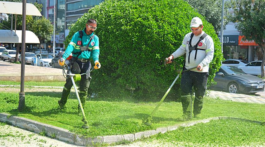 Çukurova Belediyesi Park ve Bahçeler Müdürlüğü ekipleri, ilçe genelinde yeşil alanların bakım, ...