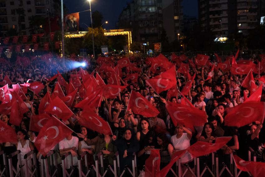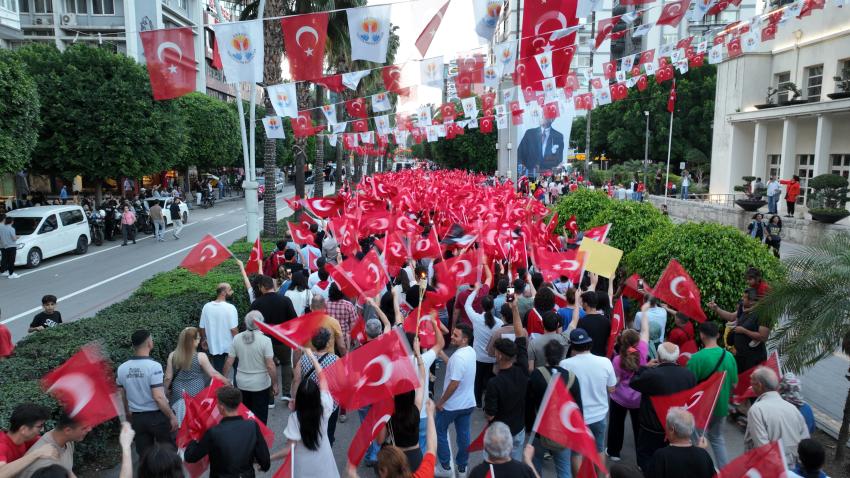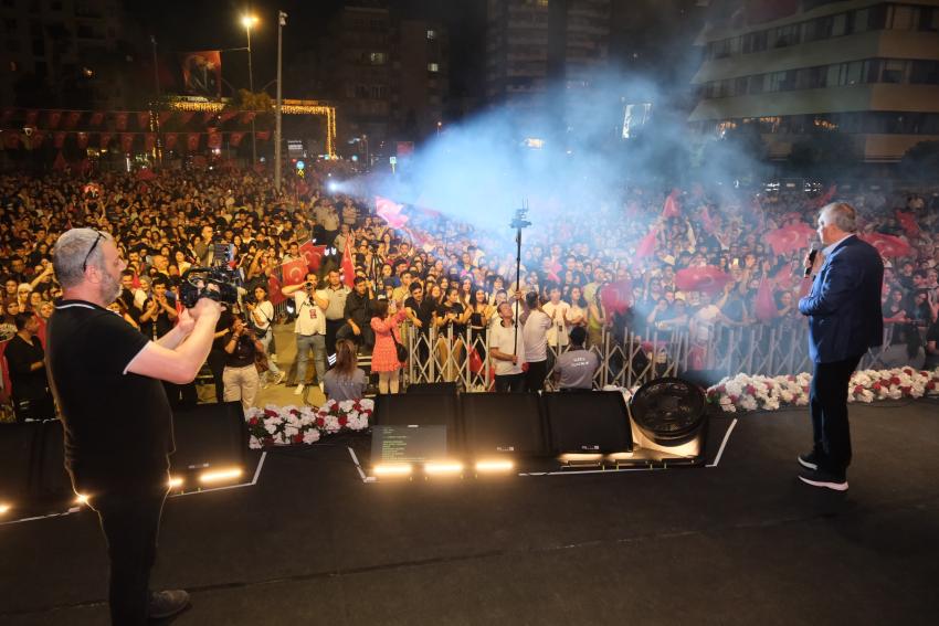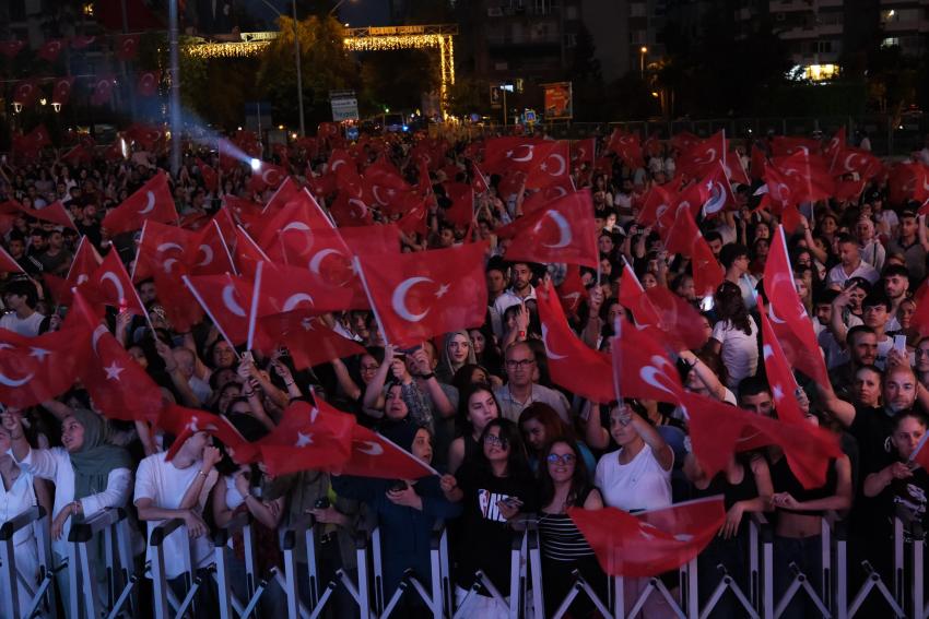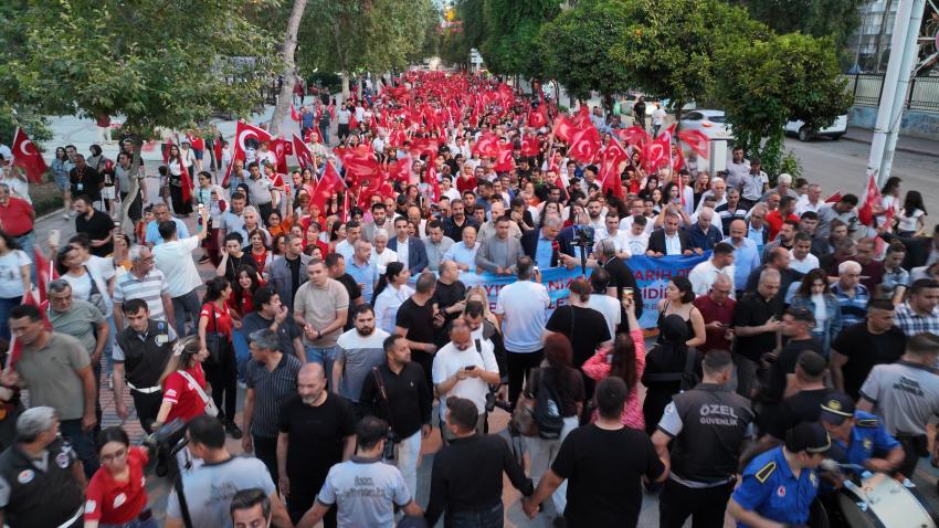 Atatürk Bulvarı, Cumhuriyet Caddesi, Ziyapaşa Bulvarı güzergahını izleyerek Uğur Mumcu Meydanı’na akan Adanalılar, burada Göksel Konseri’ni izlemek için gelen coşkulu hemşehriyeriyle buluştu.