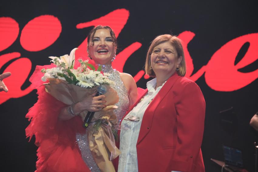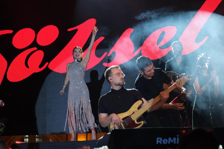 Başkan Zeydan Karalar’ın konuşmasının ardından sanatçı Göksel, Uğur Mumcu Meydanı’nı dolduran Adanalılara en güzel şarkılarını söyledi.