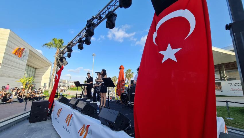 Alışveriş merkezinin açık hava ve kapalı alanlarında gün boyunca düzenlenen etkinliklerde Milli Marşlarımız ve birçok sevilen şarkıların seslendirildiği Bando gösterisi günün en çok ilgi gören aktivitesi oldu. Gün boyunca Gelen tüm ziyaretçilere Türk Bayrağı dağıtıldı. Ahmet Kuvvetli Konseri yanında Adana’daki bir çok liseden katılan genç öğrencilerin oluşturdukları müzik grupları sahnede yer alarak sahnede yeteneklerini sergiledi.Çocuk Atölyelerinde çocukların Atatürk Rozeti çalışmaları yanında İsmet İnönü Kız Meslek Lisesi’nin öğrencilerinin Resim Sergisi günün ilgi çeken etkinliklerinden biri oldu.