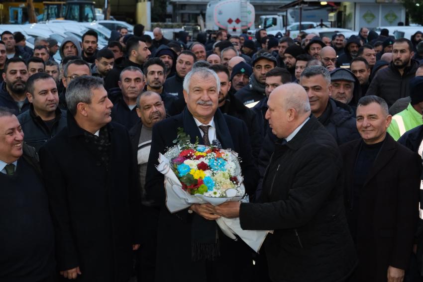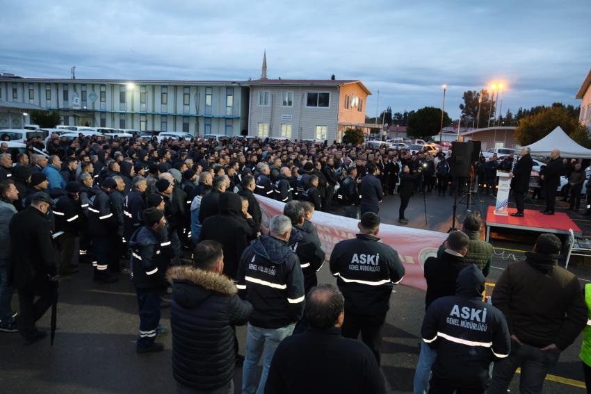 Adana Büyükşehir Belediye Başkanı Zeydan Karalar, sabahın erken saatlerinde ASKİ personeliyle bir araya geldi ve yeni yıl mesajı verdi.
