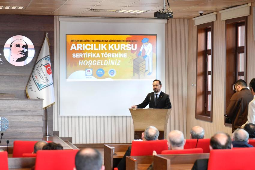 Sarıçam Belediyesi’nin, ilçede üretimin ve istihdamın önünün açılması için yaptığı çalışmalar arasında yer alan meslek edindirme kursları, vatandaşlar tarafından yoğun ilgi görüyor. Başkan Bilal Uludağ’ın talimatları ile Çukurova Üniversitesi ve Sarıçam Halk Eğitimi Merkezi işbirliğinde ilçede bu yıl üçüncüsü açılan “Arıcılık Kursu’nda, kursa katılan 250 kursiyerlere sertifikaları, düzenlenen törenle takdim edildi. Sarıçam Belediyesi Ömer Çelik Meclis Salonunda düzenlenen törene, Sarıçam Belediye Başkanı Bilal Uludağ, Sarıçam Halk Eğitimi Merkezi Müdürü Alparslan Akıllı, Çukurova Üniversitesi Ziraat Fakültesi Zootekni Bölümü öğretim üyesi Aykut Burgu ve kursiyerler katıldı.
