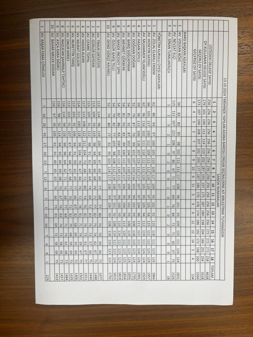 Adana Barosu seçimlerinde Av.Volkan Böke, en yakın rakibi Nevzat Elçi’ye 305 oy fark atarak Baro Başkanı seçilirken seçimde baro başkan adayları, yönetim kurulu üyeleri, disiplin kurulu üyeleri, denetleme kurulu üyeleri, Türkiye Barolar Birligi Delege Adayları’nın ne kadar oy aldıkları merak konusu oldu.
