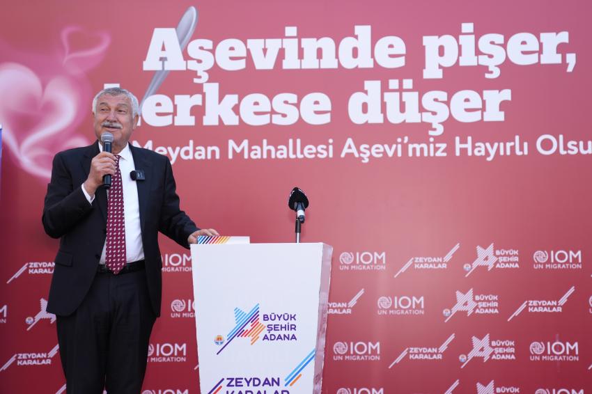 Adana Büyükşehir Belediyesi ve Birlemiş Milletler Göç Örgütü (IOM) birlikteliğiyle hayata geçirilen aşevinin açılışı Meydan Mahallesi Bakımyurdu Caddesi’nde gerçekleştirildi.