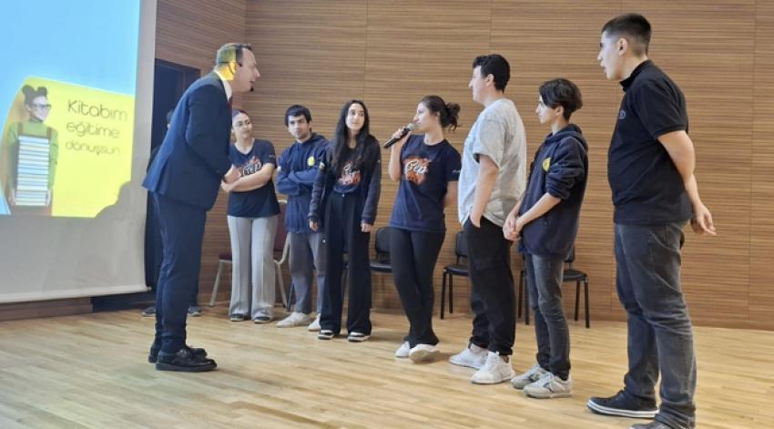 TRT seslendirme sanatçısı, eğitimci ve yazar Tolga Bare, “Kitabım Eğitime Dönüşsün” adlı sosyal sorumluluk projesi kapsamında ÇEP Ticaret Mesleki ve Teknik Anadolu Lisesi eski adıyla İletişim Lisesi öğrencileriyle buluştu.