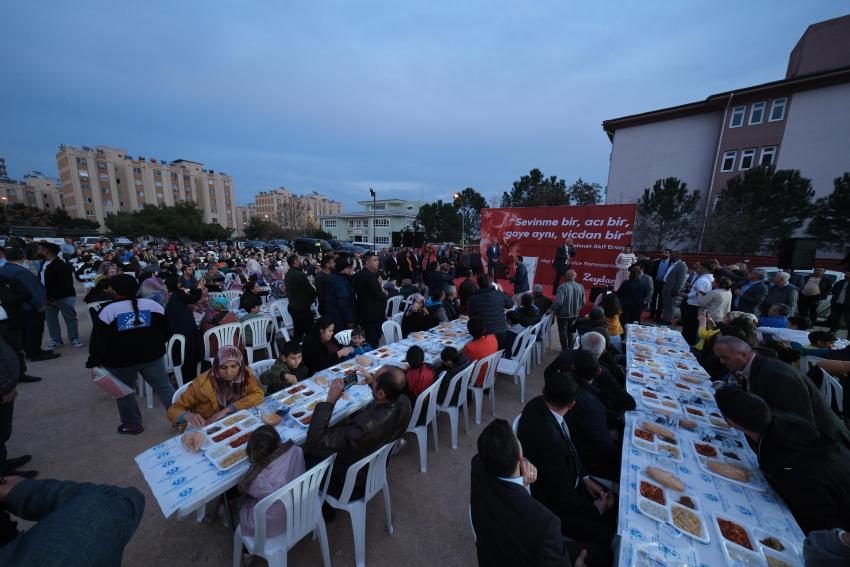 Sarıçam ilçesi Osmangazi ve Ertuğrul Gazi mahallelerini kapsayan Büyükşehir iftar programına da katılan Başkan Zeydan Karalar, “Ramazan Ayı mübarek ay. Kırgınlıkları, küskünlükleri, düşmanlıkları bırakmak için en güzel iklim. Kavgadan, husumetten kimseye yarar gelmez. Sarıçam’a hizmet etmeye, halkımız için şu ana kadar yaptığımız devasa hizmetlere, önümüzdeki dönem de devam edeceğiz” diye konuştu.