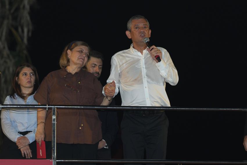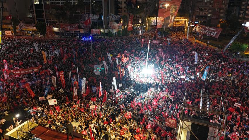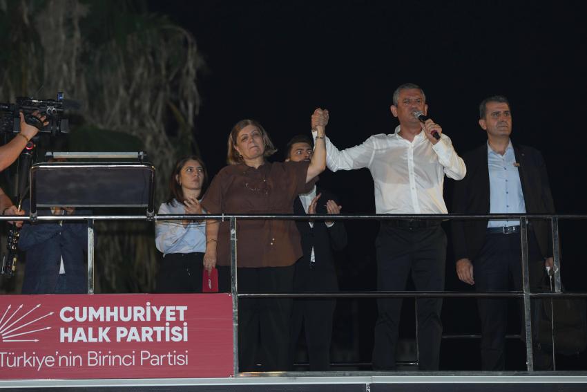 CHP Genel Başkanı Özgür Özel konuşmasına “Adana’nın yiğit, mert evlatları, yüreğinde Atatürk sevgisi olan evlatları” diyerek başladı ve büyük bir haksızlığın karşısında olmak, haklıların yanında durmak, Adanalıların iradesine sahip çıkmak için birlikte olduklarını kaydetti.