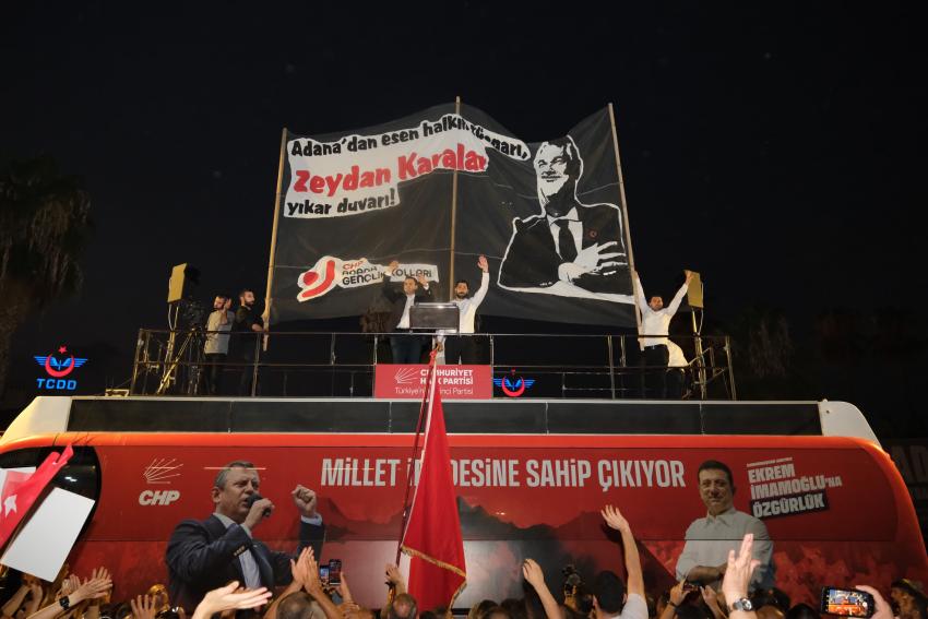 Adana Büyükşehir Belediye Başkanı Zeydan Karalar, Seyhan Belediye Başkanı Oya Tekin ve Ceyhan Belediye Başkanı Kadir Aydar’ın tutuklanması ve görevden uzaklaştırılmalarının ardından Adana’da, “Başkanlarımıza Özgürlük” mitingi düzenlendi.