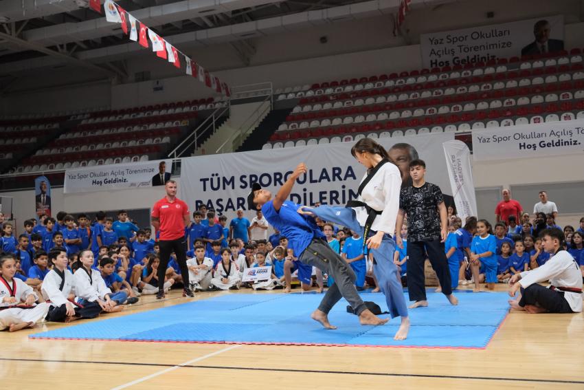 Adana Büyükşehir Belediyesi Yaz Spor Okulları açılış töreni, ASKİ Spor Salonu’nda; sporcuların, öğrencilerin, velilerin ve Başkan Zeydan Karalar’ın katılımı ile gerçekleşti.