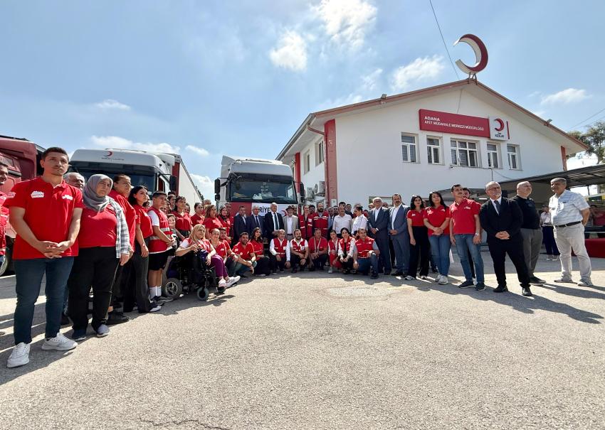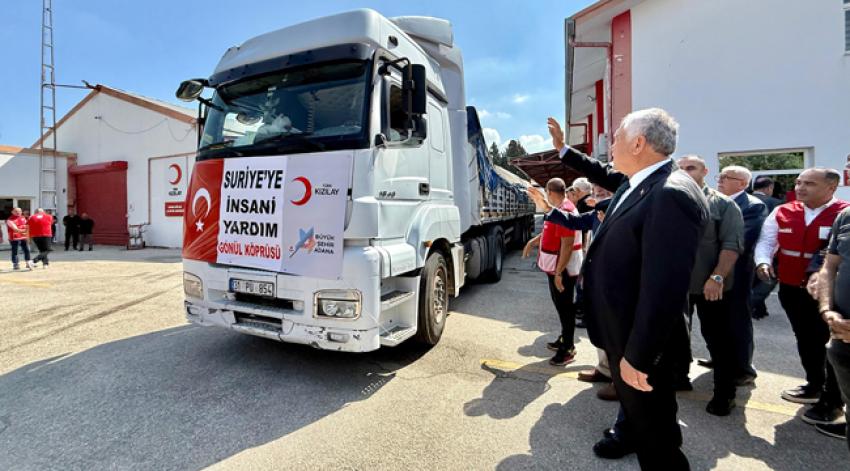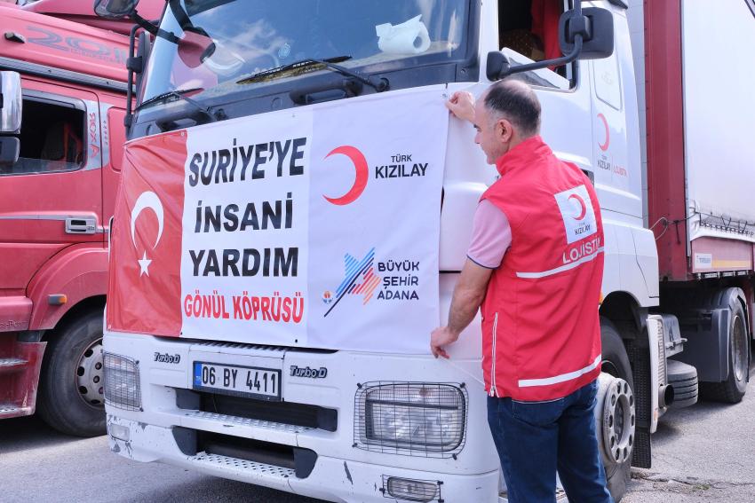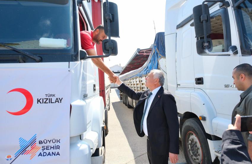 Adana Büyükşehir Belediyesi ve Türk Kızılay’ı arasında imzalanan protokol kapsamında; hijyen malzemesi yüklü üç tır, Suriye’ye ulaştırılmak üzere yola çıkarıldı. Türk Kızılay Adana Bölge Afet Yönetimi Müdürlüğü bahçesinden yola çıkarılan konvoyu; Adana Büyükşehir Belediye Başkanı Zeydan Karalar, Türk Kızılayı Genel Sekreteri Ramazan Saygılı, her iki kurumun bürokrat ve çalışanları uğurladı.