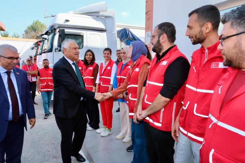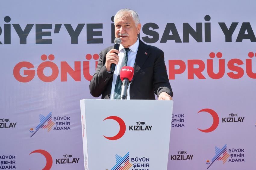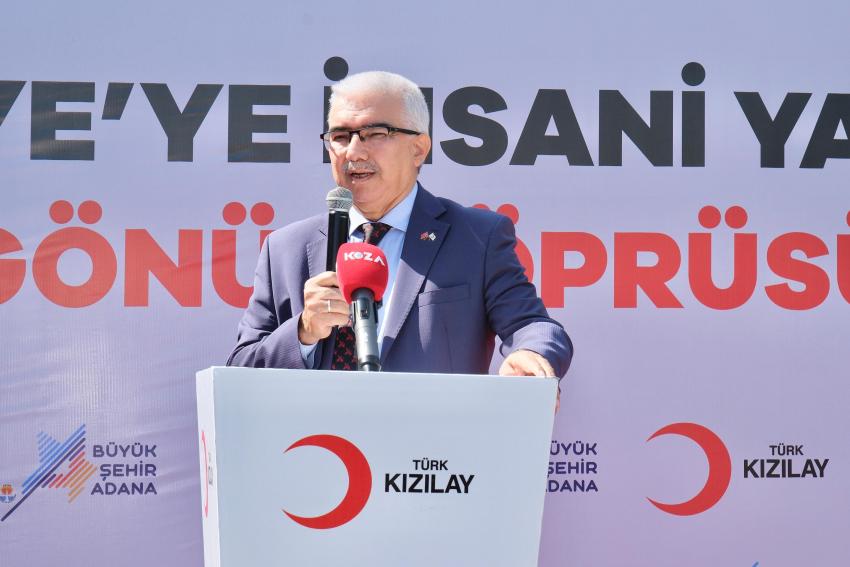 Bugün nasip olursa insani yardım tırlarımızı, hijyen malzemelerimizi, destek bekleyen, sıkıntıları olan Suriye’deki mazlumlara ve mağdurlara, ihtiyaç sahiplerine ulaştırmak üzere yola çıkarıyoruz. Suriye’de uzun süren savaş dönemi sona erdi. Milletimizin, Türkiye’mizin, Kızılay’ımızın merhamet eli sürekli üzerlerinde olacak. Adana Büyükşehir Belediyesi’ne ve katkı sağlayanlara müteşekkiriz. Yardımlarımız çeşitlenerek devam edecek. Amacımız yaraya merhem olmak. Bir yardım yaparken büyüklerimizden öğrendiğimiz gibi renk körüyüz. Mağdur, mazlum ve ihtiyaç sahibi varsa, onların yarasına merhem olmayı şiar edindik.”