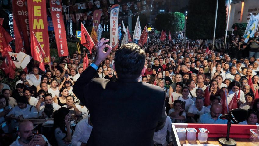 Daha sonra toplanan kalabalık Başkan Tanburoğlu önderliğinde Taş Bina önünden Uğur Mumcu Meydanı’na doğru yürüyüşe geçti. Atatürk Caddesi ve Ziya Paşa Bulvarı’ndan devam eden yürüyüşün son bölümünde, Uğur Mumcu Meydanı’nda Bedri Rahmi Eyüboğlu’nun yazdığı, Zülfü Livaneli’nin bestelediği ‘Yiğidim Aslanım’ türküsü telefon ışıkları eşliğinde söylendi. Zeydan Karalar ile diğer gözaltında olanlar ve tutuklu bulunan siyasi tutsaklara selam gönderildi. Yürüyüş ve miting olaysız sona erdi.