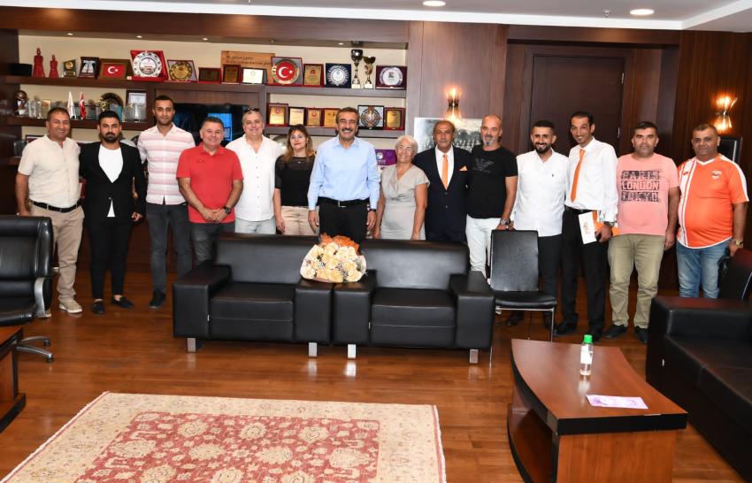 Tur-Beyler Grubu Tribün Lideri Aziz Kaçar, Sevdamız Adana Platformu Sözcüsü Selahattin Baynal, Turuncu Dokunuş Derneği Başkanı Yıldıray Reyhanioğlu ve bir grup Turuncu-Beyazlı taraftar Başkan Soner Çetin’i makamında ziyaret etti.