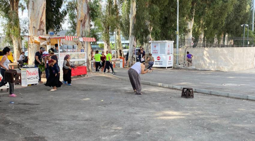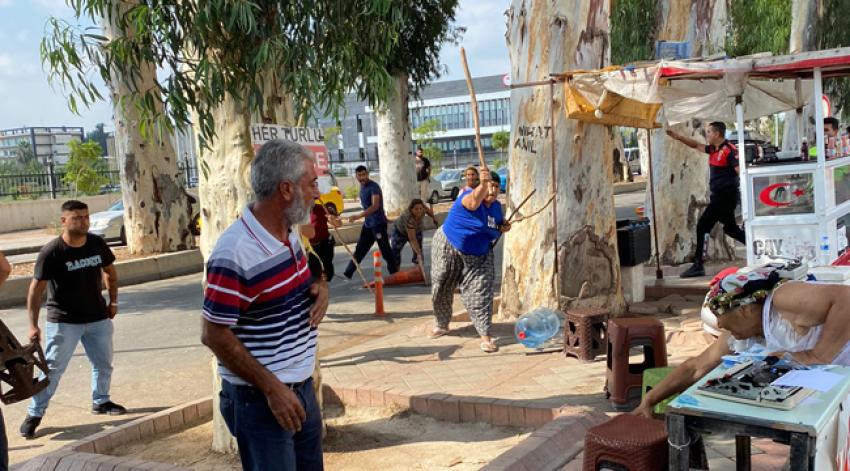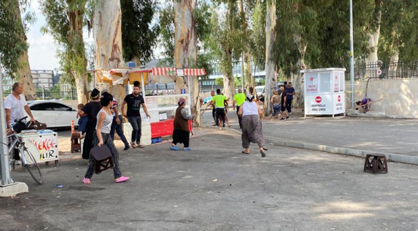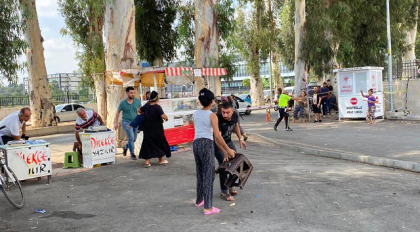 Adana'da duruşmadan çıkan kadınlar adliye önünde taşlı, sopalı ve tabureli birbirlerine saldırdı. Kadınların kavgasını polis güçlükle ayırdı.