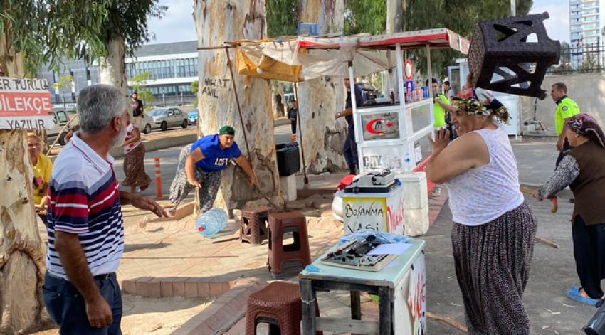Aile erkeklerinin karışmadığı görülen kavgada kadınlar, hırslarını alamayıp küfürler ederek çevreden buldukları sopa ve taşlarla yeniden birbirlerine saldırdı. Bazı kadınlar da adliye girişindeki arzuhalcilerin taburelerini alıp fırlattı.