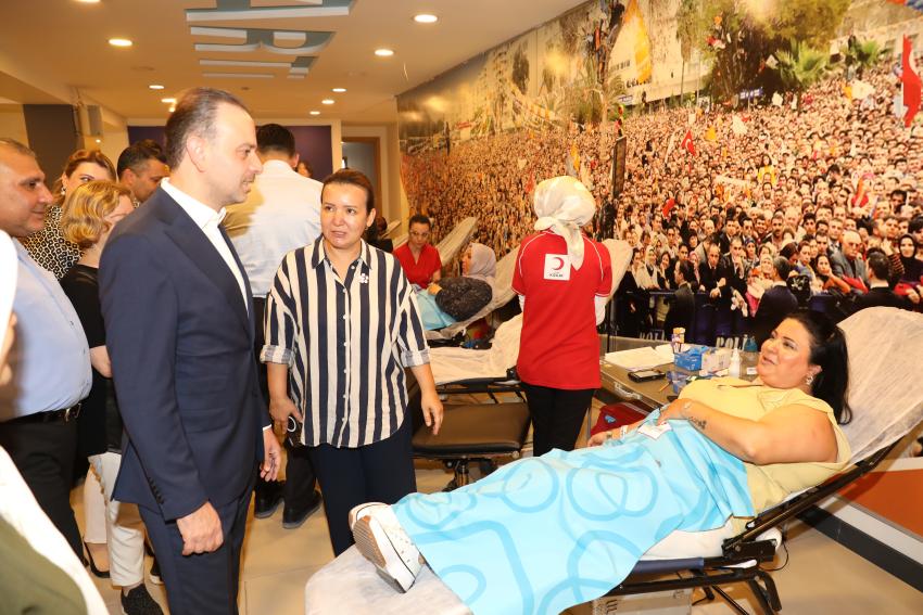 AK Parti Adana İl Başkanlığı tarafından 'Birbirimize candan bağlıyız' sloganıyla kan bağışı kampanyası yapıldı.