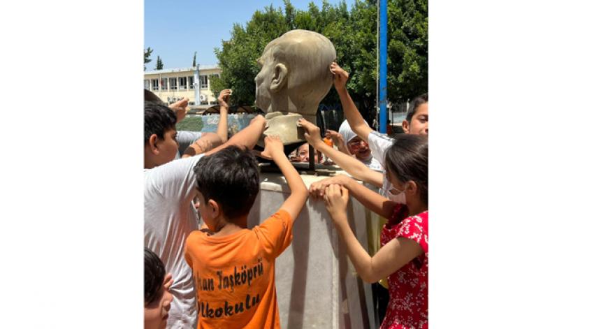 Adana’nın Seyhan İlçesi'nde bulunan Taşköprü İlkokulu, örnek bir çalışmaya imza attı. Okul, bahçesindeki Atatürk Büstü yenilenirken, okul öğretmeni Ajda Canoğulları ile Yener Özdemir'in katkılarıyla yep yeni kütüphaneye sahip oldu.