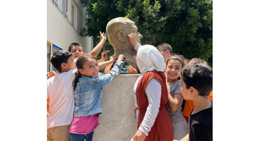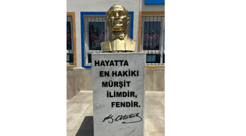 Atatürk Büstü yenilendi, okul kütüphaneye kavuştu