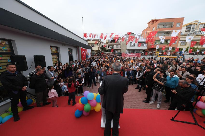 Bahçeşehir Mahallesi’nde gerçekleştirilen Gündüz Bakımevi’nin açılışını yapmak üzere gelen Başkan Zeydan Karalar’ı alana sığmayan coşkulu kalabalık karşıladı. Ailelerin çocukları ile katıldığı ve büyük ilgi gösterdiği açılışa, siyasiler, muhtarlar, öğrenciler, öğretmenler ve Bahçeşehir Mahallesi sakinleri katıldı.