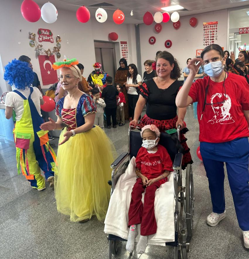 Balcalı Feyyaz Etiz Onkoloji ve Hematoloji Hastanesi Çocuk Servislerinin girişlerinin bulunduğu alanda düzenlenen, Başhekimlik ve Gönüllüler Derneği'nin birlikte organize ettiği etkinlikte çocuklar hem eğlendi hem de 23 Nisan Ulusal Egemenlik ve Çocuk Bayramı’nı kutladı. Tedavileri hastane ortamında devam eden çocuklar, aileleri ve hemşirelerle birlikte şarkılar eşliğinde eğlendi. Programda, çocuklara çeşitli hediyeler verildi.