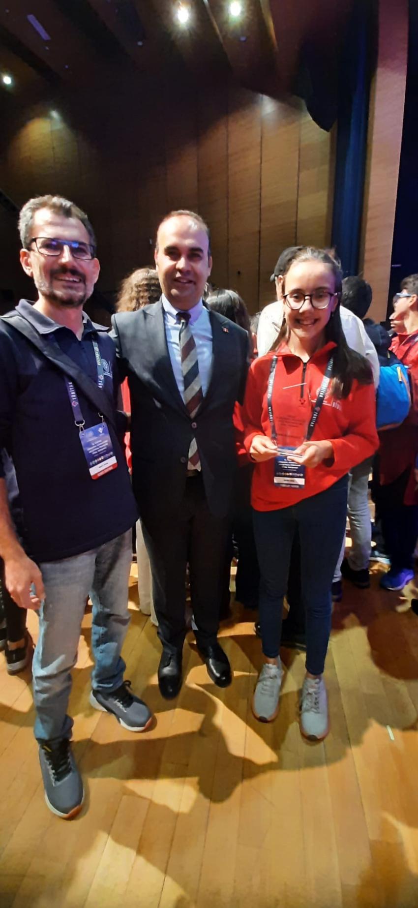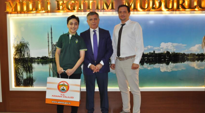 Adana Doğa Koleji Ortaokul öğrencisi Belinay Akdaş "Flex Sensörü Yardımıyla Emniyet Kemeri Kontrolü" projesi ile TÜBİTAK Türkiye 1.si olduğunu hatırlatan Kekilli, “Danışman öğretmenimizi, öğrencimizi ve velilimizi kutluyorum. Bugüne dek gerçekleştirdiğimiz ve gerçekleştireceğimiz tüm başarılar için bu yolda kalbinizle ve emeğinizle yanımızda olduğunuz için teşekkür ediyorum.’’ diyerek, bu başarıda emeği geçen Ortaokul Müdürü Deniz Yılmaz’a ve tüm eğitim kadrosuna teşekkür etti.