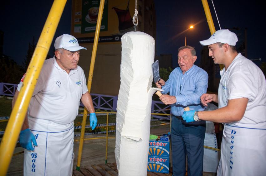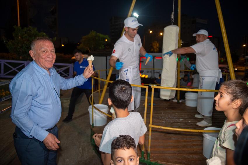 Başkan Akif Kemal Akay etkinlikte satırla kestiği dondurmaları çocuklara ikram ederken, dondurma kebap şovu da vatandaşlardan yoğun ilgi gördü.