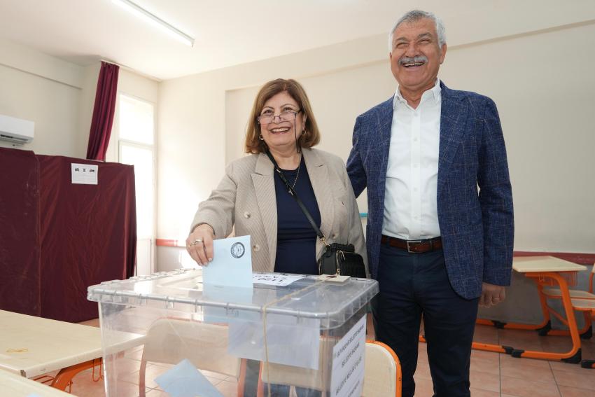 Eşi Nuray Karalar’la birlikte 1120 Nolu sandıkta oyunu kullanan Başkan Zeydan Karalar, oy kullanmaya gelen hemşehrileriyle ve sandık görevlileriyle selamlaşıp, sohbet etti. Başkan Zeydan Karalar, oyunu kullanmasının ardından basın mensuplarının sorularını yanıtladı.