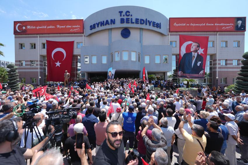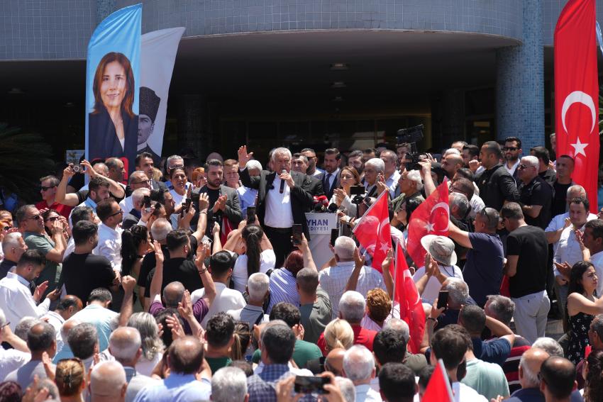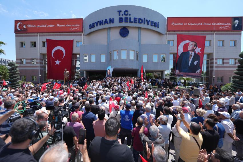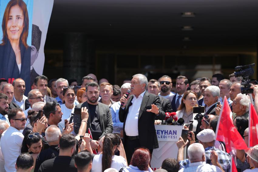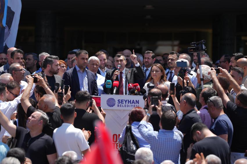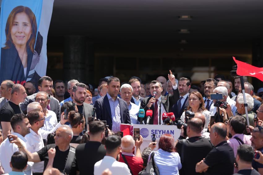 Seyhan Belediyesi önünde düzenlenen basın açıklamasına Türkiye Belediyeler Birliği (TBB) Başkan Vekili ve Adana Büyükşehir Belediye Başkanı Zeydan Karalar, CHP Adana Milletvekilleri Bilal Bilici, Müzeyyen Şevkin ve Orhan Sümer, CHP’nin Mersin, Hatay ve Osmaniye il başkanları, Yüreğir Belediye Başkanı Ali Demirçalı, Çukurova Belediye Başkanı Emrah Kozay, Yumurtalık Belediye Başkanı Erdinç Altıok, Karataş Belediye Başkanı Ali Bedrettin Karataş, CHP’nin eski milletvekilleri, CHP il yönetimi, merkez ilçe başkanları, kadın ve gençlik kollarının yanı sıra binlerce vatandaş katıldı. Basın açıklaması mitinge dönüştü.
