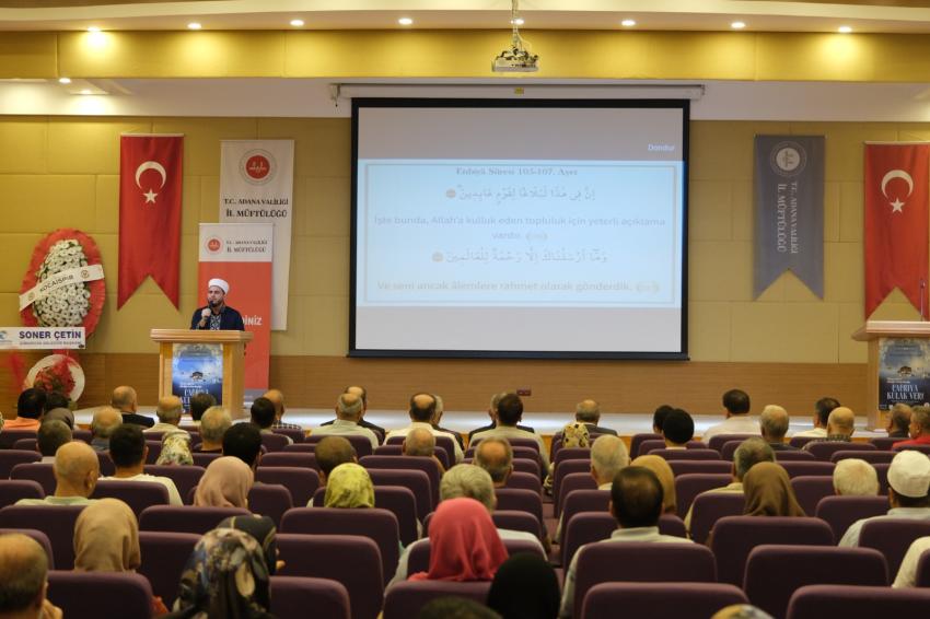 Adana İl Müftülüğü tarafından düzenlenen Mevlid-i Nebi Haftası ile Camiler ve Din Görevlileri Haftası etkinlikler kapsamında Necmettin Erbakan Üniversitesi İlahiyat Fakültesi Öğretim Üyesi Prof. Dr. Ali Akpınar’ın konuşmacı olarak katıldığı bir konferans düzenlendi.
