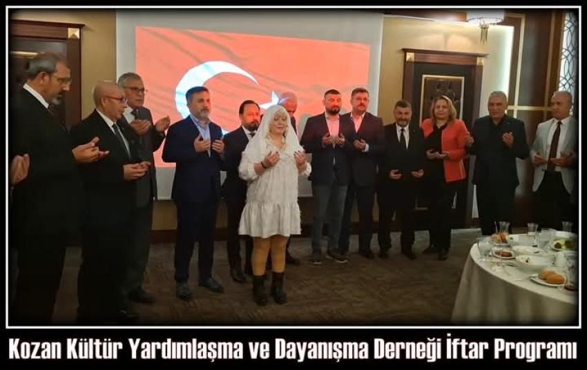 Yönetim Kurulu Başkanlığını Emekli Banka Müdürü Bölgenin Tanınmış İsimlerinden Mümtaz Akbulut’un yaptığı, Kısa ismi Kozan-Der olan Kozan Kültür Yardımlaşma ve Dayanışma Derneğinin iftar programı gerçekleştirildi. İftarda, dayanışmanın ve kaynaşmanın varlığına önemine dikkat çekildi.