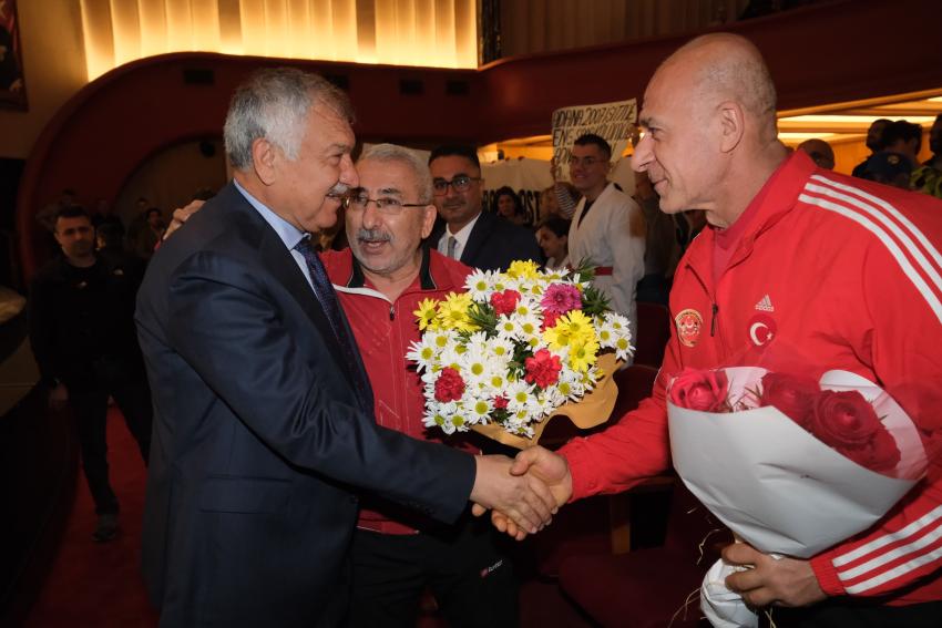 Başkan Zeydan Karalar sözlerini şöyle tamamladı: “Adana’mızı, ailelerinizi ve bizleri; başarılı olarak, şampiyonluklar getirerek, madalyalar kazanarak gururlandırın. Avrupa’da, dünyada şampiyonluklar kazanarak şanlı bayrağımızı göndere çektirin.”