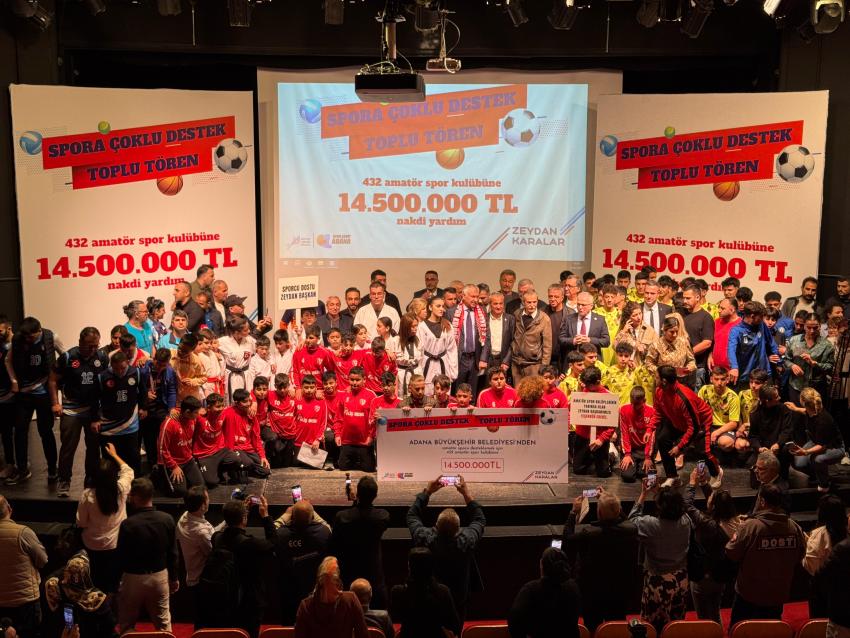 432 Amatör Spor Kulübü’ne yapılan 14 milyon 500 bin liralık nakdi destek nedeniyle, Adana Büyükşehir Belediyesi Tiyatro Salonu’nda tören gerçekleştirildi.