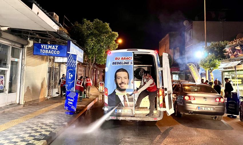 Ekipler, sokakları ve caddeleri süpürge aracının desteği ile temizlerken, kaldırımlar ve caddeler ilaçlı sularla yıkandı. Ardından, dezenfekte aracı ile temizlik çalışmaları tamamlanarak halkın sağlığına yönelik önlemler alındı. Sokak ve caddelerin bayramda mis gibi kokması için ise gül kokusu sıkıldı. Ramazan ayı boyunca ilçedeki tüm camilerde temizlik yapan ekipler, bayram namazı için camilere de gül kokusu sıkarak, dini ibadetlerin huzur içinde yapılmasını sağladı.