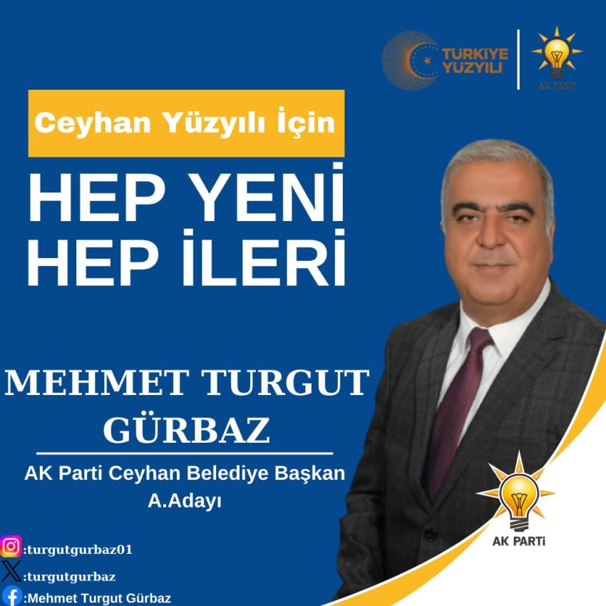 Aynı zamanda Marmara Üniversitesi İletişim Fakültesi, Halkla ilişkiler ve Tanıtım Bölümü 2. Sınıf öğrencisi olan Mehmet Turgut Gürbaz, “Güzel Ceyhanımıza uzun yıllar eğitimci olarak hizmet ettim. Ceyhan’ı daha güzel kılmak, daha yaşanabilir bir şehir yapmak için belediye başkanlığına aday adayı oldum. Bir eğitimci olarak Ceyhan’ın sorunlarını yakından biliyorum. Sorunların çözümü için daha güzel bir Ceyhan için hizmet adına yola çıktım” dedi.