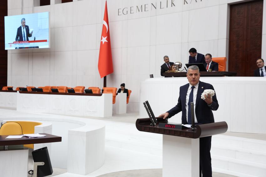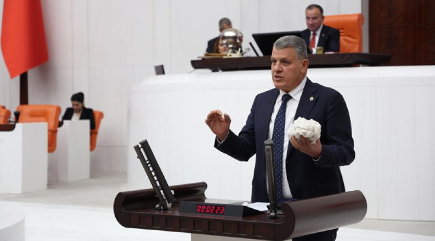 "Çiftçiler ürettiğinden zarar edince, bunun neticesinde, pamuk ekim alanları her geçen gün eksilmektedir. 1990'lı yıllarda pamuk ekim alanı tüm Türkiye'de 750-760 bin hektarken günümüze geldiğimiz şu yıllarda 350-400 bin hektar civarındadır. Neden pamuk ekiminden kaçılmıştır? Üretici kazanamıyor. Bunun karşılığında ise ne yapıyoruz? Pamukta ithalata yöneliyoruz. Her yıl 1 milyon tonun üzerinde, 2 milyar dolar civarında para ödeyerek maalesef pamukta ithalat yapıyoruz. AKP iktidarında 18 milyon ton pamuk için 32 milyar dolar para harcanarak maalesef ithalat yapılmıştır. İşte bu 32 milyar dolar para eğer bizim kendi üreticimizin cebinde kalmış olsaydı, hem pamuktaki açığı kapatmış olurduk hem de üreticilerimiz refah içinde tarımını sürdürürdü. Ancak işbaşındaki AKP iktidarı maalesef ithalat sevdalısı. Hem 'yerliyiz' hem 'milliyiz' deyip de yerli ve milli üreticileri desteklemeyip yurtdışı üreticilerini destekleyen bir iktidar var. Bu nedenle, pamuk üreticisinin derdine derman olmak için, en az 35 lira civarında ürününü elinden çıkarması gerekiyor. Aksi takdirde, zaten azalmaya yüz tutmuş, neredeyse yok olmuş bu pamuğu bundan sonra eski Türk filmlerinde ancak görebiliriz. Pamuk üreticilerinin derdine derman olun."