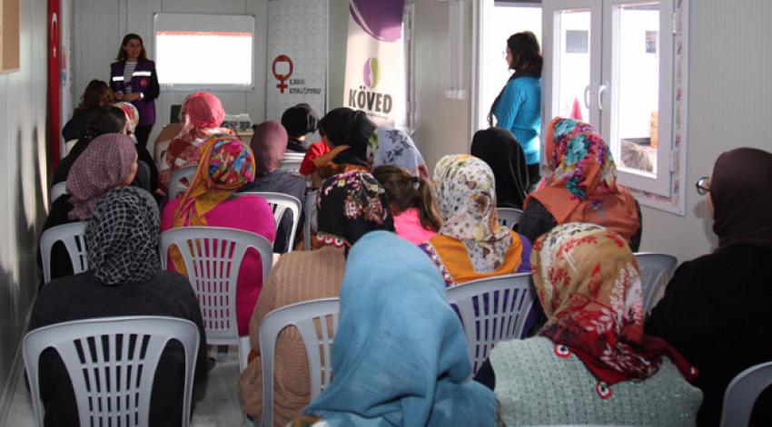 Eğitimde ayrıca Adana Kadına Özgürlük ve Eşitlik Derneği (KÖVED) yöneticileri tarafından 19 Mayıs Mahallesi Adana Kadın Yaşam Merkez’inde meslek elemanları tarafından verilen hizmet ve çalışmalar anlatıldı.