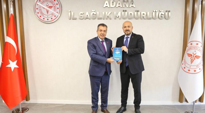 Adana İl Sağlık Müdürü Uzm. Dr. Halil Nacar, makamında misafir ettiği Meteoroloji Genel Müdürü Volkan Mutlu Coşkun’a sağlık hizmetlerini anlattı.
