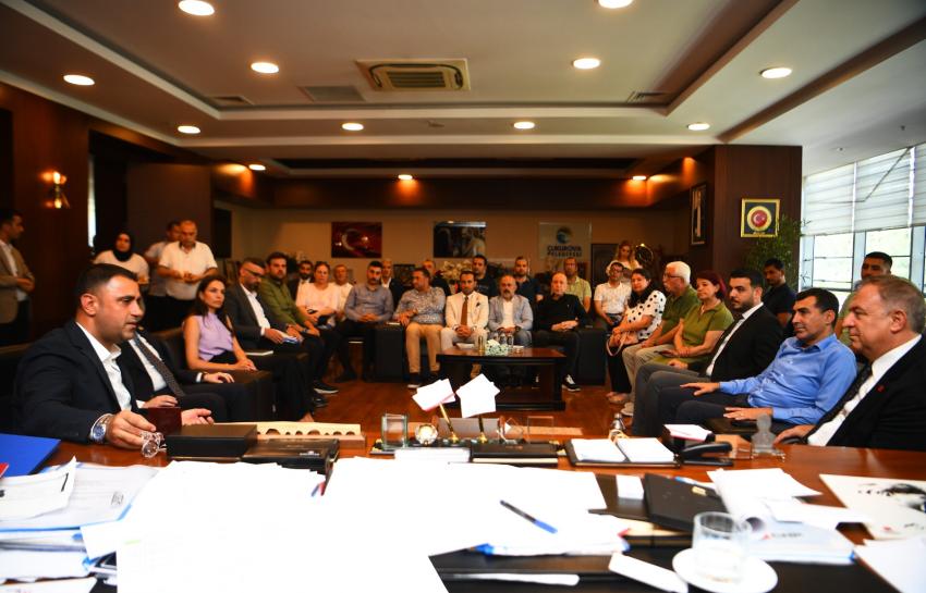 Başkan yardımcıları, birim müdürleri ve meclis üyeleriyle birlikte CHP Genel Başkan Yardımcısı Gökan Zeybek’i ve CHP Adana İl Başkanı Anıl Tanburoğlu’nu ağırlayan Kozay, “Göreve geldiğimiz günden beri çok güzel mesafeler kat ettik. Çukurova’da çok güzel işlere imza atacağız” dedi.