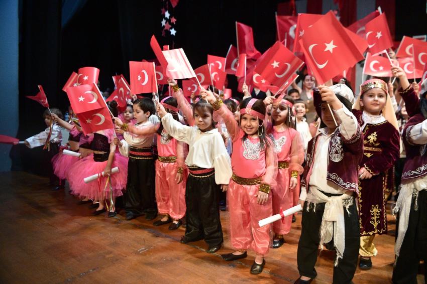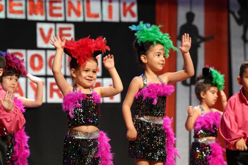 Minik öğrenciler öğretmenleri eşliğinde şiirler okuyarak, şarkılar ve danslar eşliğinde unutulmaz bir gün yaşadı. Birbirinden renkli gösteriler hazırlayan minik öğrenciler ayakta alkışlandı.