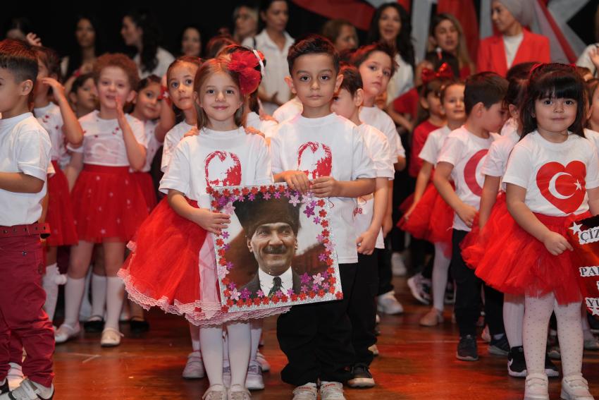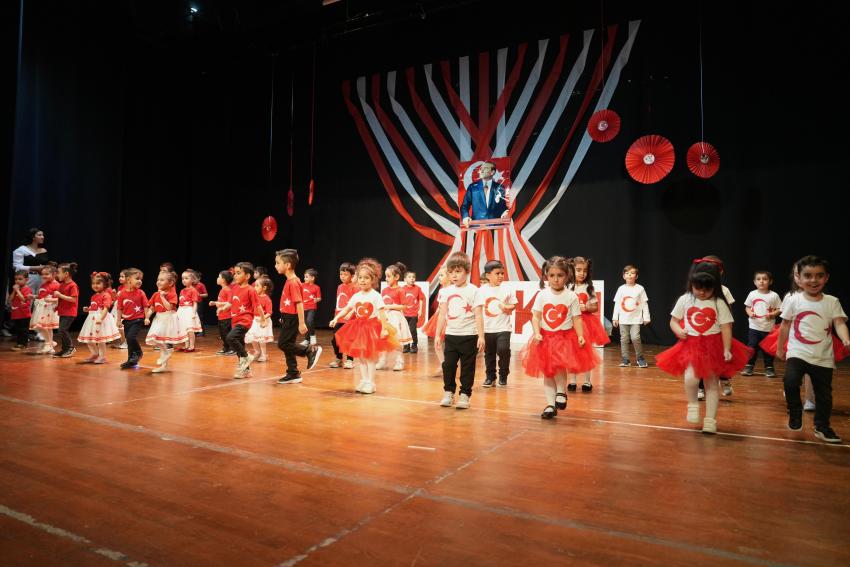 Çukurova Belediyesi’nin kreşlerinde eğitim gören miniklerin 29 Ekim Cumhuriyet Bayramı kutlama programı saygı duruşu ve istiklal marşını okuyarak başladı. Özel hazırladıkları gösterileri sunan kreş öğrencileri şarkılar, marşlar ve şiirlerle Cumhuriyet’in kuruluşunun 101’nci yılını coşkuyla kutladı. Minik öğrenciler, gösterilerin ardından ellerinde Türk Bayraklarıyla marş söyleyerek, 29 Ekim Cumhuriyet Bayramı coşkusunu doyasıya yaşadı. Çocukların gösterilerini ilgiyle izleyen aileler ise duygu dolu anlar yaşadı.