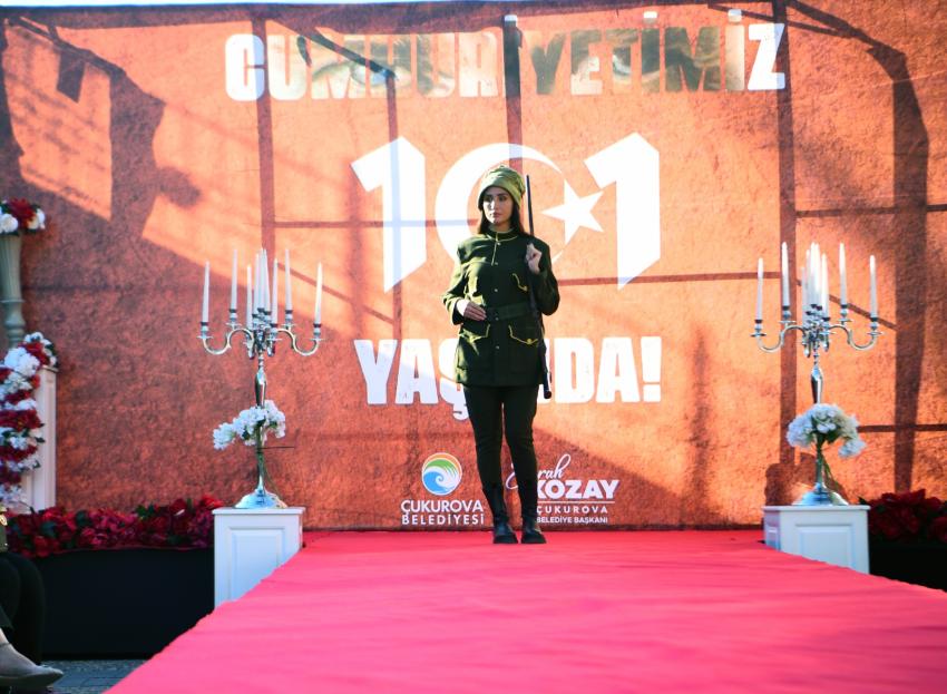 Çukurova Belediyesi’nin Cumhuriyet’in kuruluşunun 101’nci yılı dolayısıyla düzenlendiği Cumhuriyet Şöleni’nde Atatürk Fotoğrafları Sergisi, Müzik Dinletisi, Gülen Yüzler Kreşleri Gösterisi, Cumhuriyet Defilesi Çukurovalılar tarafından büyük ilgi gördü.