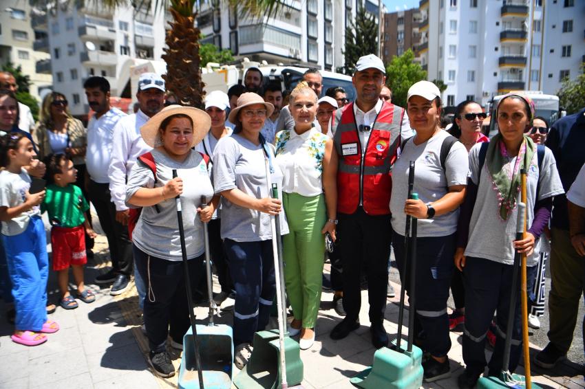 TEMİZLİK EKİPLERİYLE BİRLİKTE ÇALIŞMALARA KATILDI