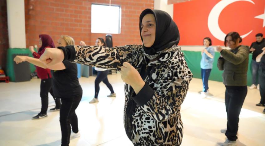 Çukurova Belediyesi’nin kadınlara yönelik ücretsiz olarak açtığı yakın savunma sporu kursu yoğun ilgi görüyor. Her yaştan kadınlar salona akın ediyor.
