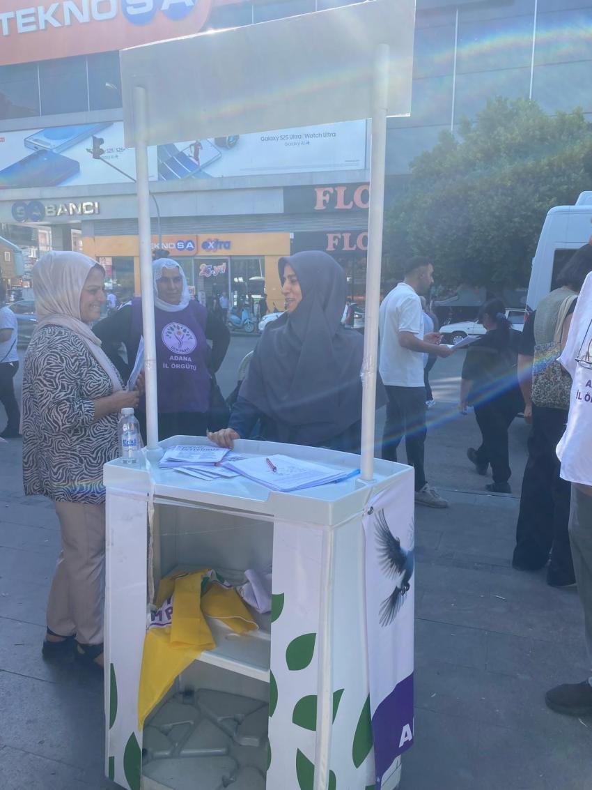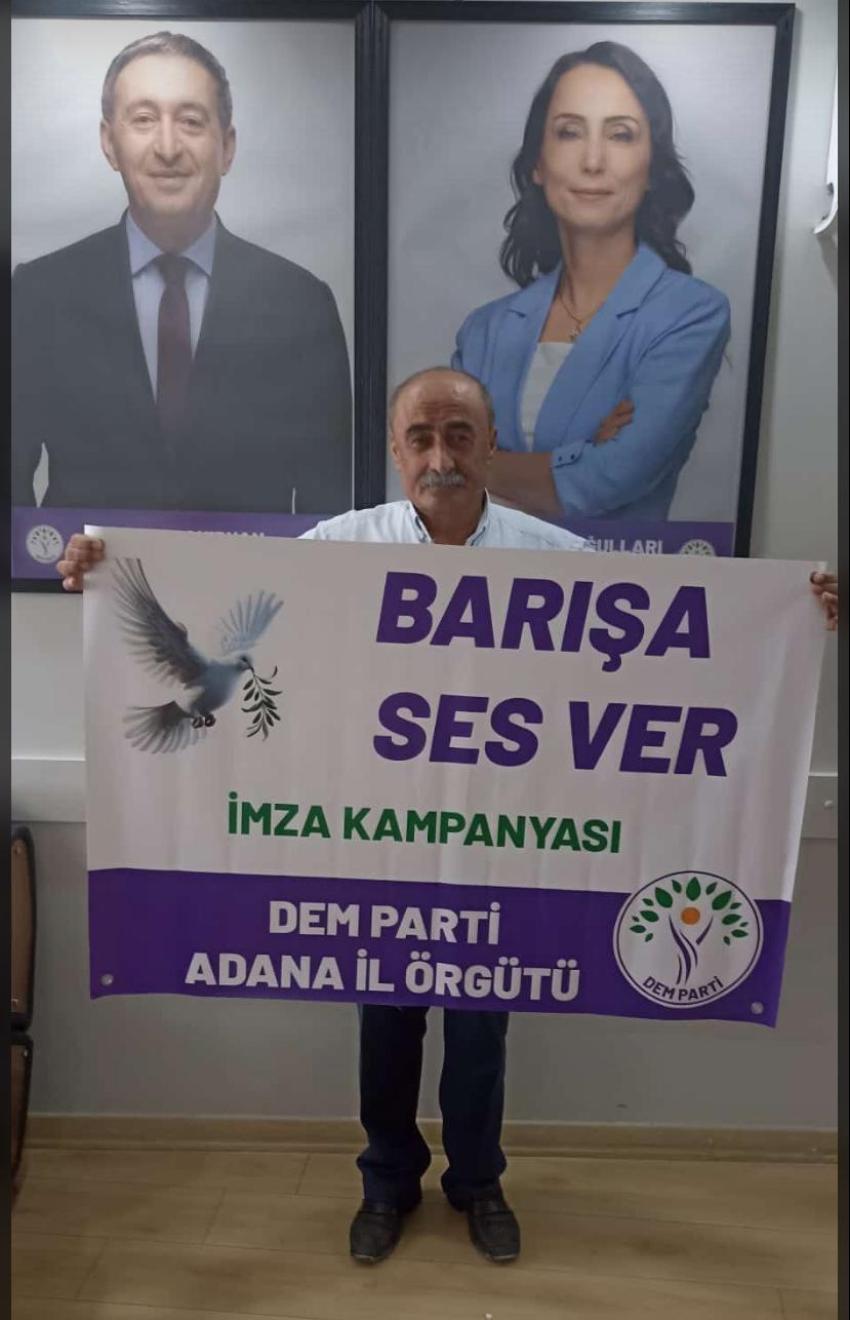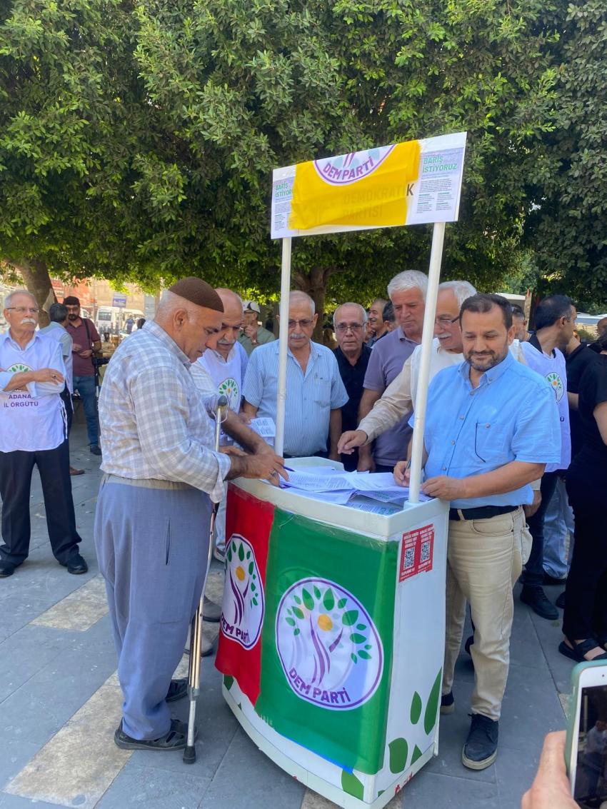 Halkların Eşitlik ve Demokrasi Partisi (DEM) Adana İl örgütü “Barışa Ses Ver” imza kampanyası başlattı. Halayların çekildiği zılgıtların çekildiği kampanya büyük ilgi görüyor.