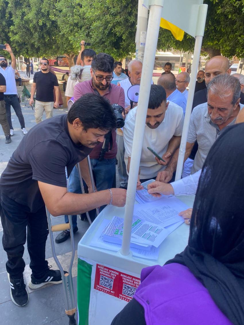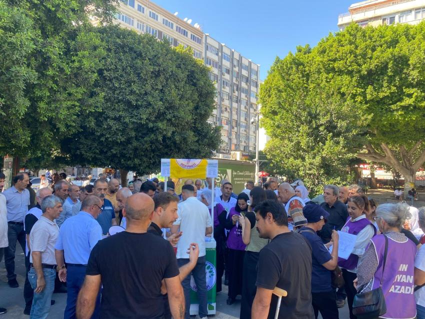 İnönü Parkı’nda başlatılan imza kampanyasının birinci ayağına çok sayıda partili ve vatandaşlar katıldı. İmza kampanyası standı büyük ilgi gördü. Halayların çekildiği şölen niteliğindeki imza kampanyasında binlerce kişi “Barış için bir imza da benden” diyerek Kardeşlik Sözleşmesi’ne imza attı. İmza kampanyasında konuşma yapan DEM Adana İl Eş Başkanı Seyfettin Aydemir, şunları söyledi: