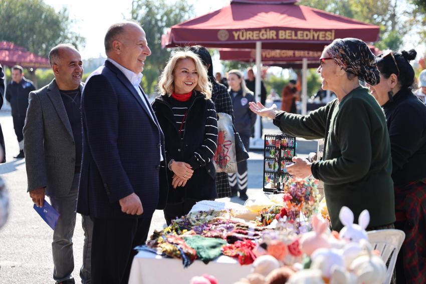 Başkan Demirçalı, eşi Fidelya Demirçalı ile birlikte stantları da tek tek gezerek Yüreğirli kadınlara destek verdi.