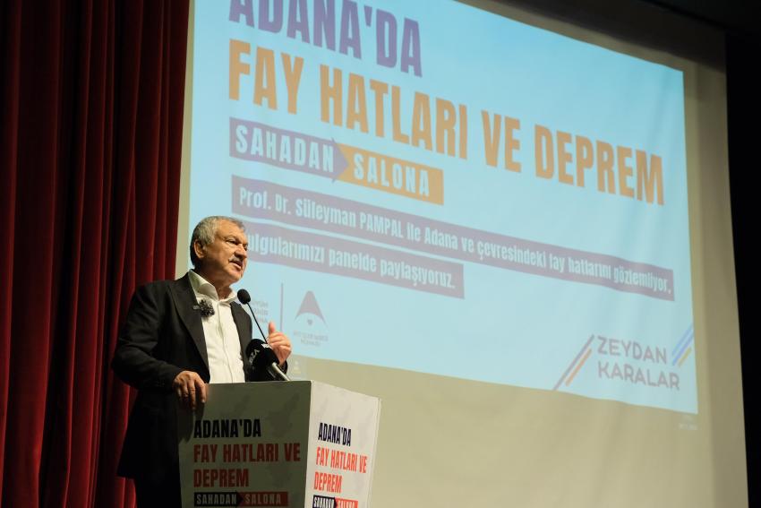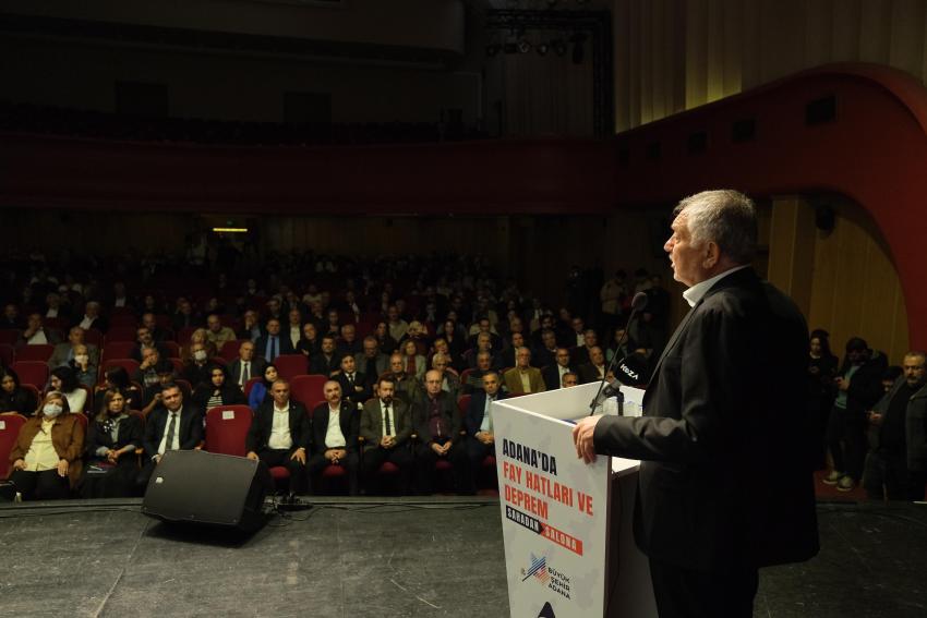 Adana Büyükşehir Belediyesi’nce düzenlenen “Adana’da Fay Hatları ve Deprem Sahadan Salona” bilgilendirme toplantısı Adana Büyükşehir Belediyesi Tiyatro Salonu’nda gerçekleştirildi.
