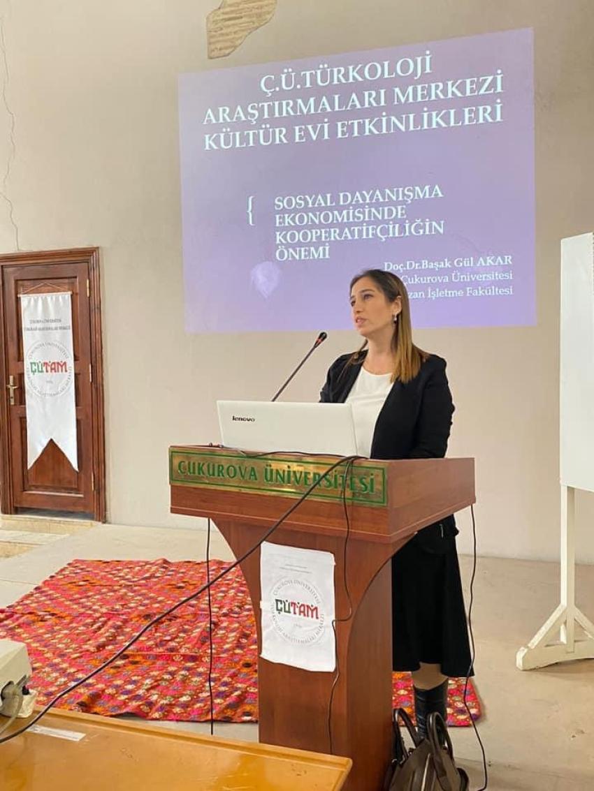 Doç. Dr. Akar, “Sosyal Dayanışma Ekonomisinde Kooperatifçiliğin Önemi” başlıklı konuşmayla ÇÜTAM katılımcılarıyla buluştu. SDE perspektifinden bakıldığında küresel yönetişim modellerinde meydana gelen değişim ve bu paralelde de reform ihtiyacının giderek arttığını söyleyen Doç. Dr. Akar, yenilenme hareketinin en önemli dayanakları olarak sosyal ve dayanışmayı esas alan organizasyonları destekleyici ve güçlendirici konumda uluslar üstü kurumların, devletlerin ve bölgesel-yerel oluşumların karşımıza çıktığını belirtti.