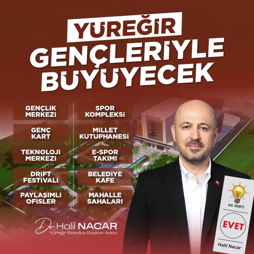 Cumhur İttifakı AK Parti Yüreğir Belediye başkan adayı Dr. Halil Nacar, heyecan yaratan projeleriyle büyük destek görüyor.
