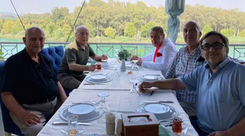 Çapa Restoran'da yenilen öğle yemeğinde Başkan Durak ve özgürlüklerine kavuşan gazeteciler; Hakan Bülent Yardımcı, Osman Palamut, Rıfat Söylemez ve Abdurrahim Haklıkul ile hasret giderip bol bol sohbet ettiler.